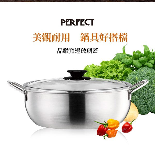 Le idea 樂德兒│PERFECT 理想牌 寬邊玻璃蓋 鍋蓋 晶鑽 不鏽鋼邊框 強化玻璃蓋